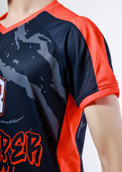 EscaperОписание: Волейбольная ФУТБОЛКА прямого силуэта. Вставки из перфорированной сетки по бокам. V-образная горловина. Рукав реглан с манжетой и вставками из перфорированной сетки. Манжеты и горловина из рибаны. Сублимация изделия обеспечивает возможность выбрать любые цвета и дизайн которые не выцветут за любое количество стирок. Полная сублимация — любой цвет и дизайн (уже входит в стоимость)